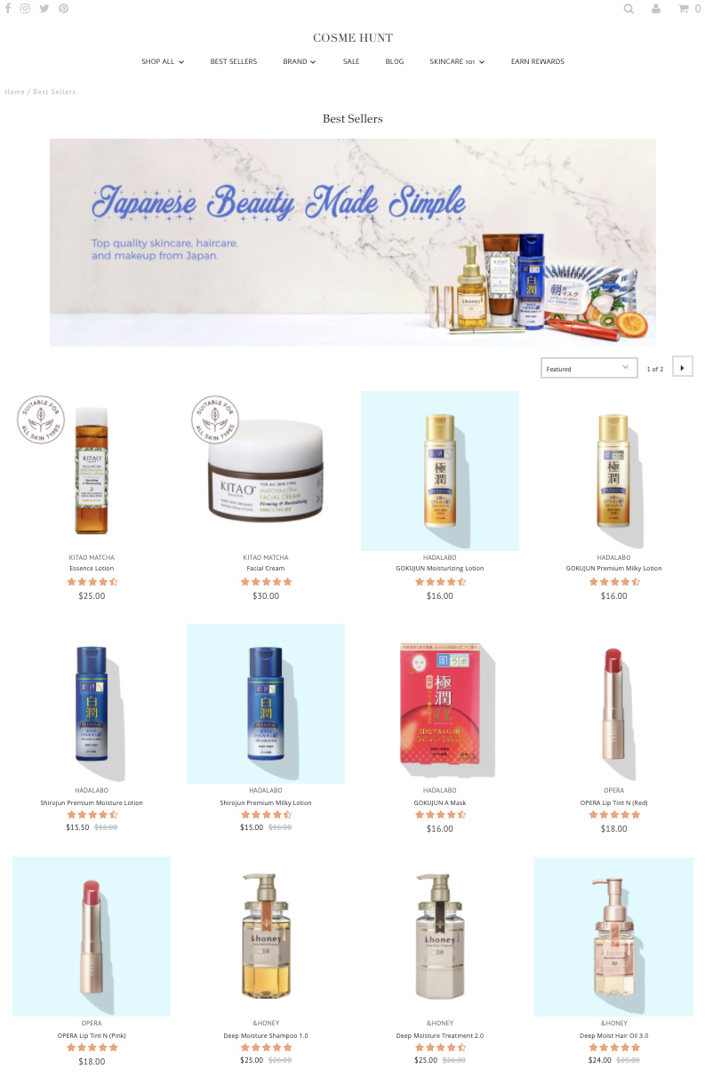 今回、エヌプラスと提携をするCosme Hunt はいち早くJ-Beautyのニーズに応え、2018年のサービス開始より日本ブランドのコスメやスキンケア製品をアメリカで販売。現在では40ブランド以上、200品以上の商品を取り扱っており、これはJ-Beautyに特化したECサイトでは米国最大手となります(2020年1月現在)。